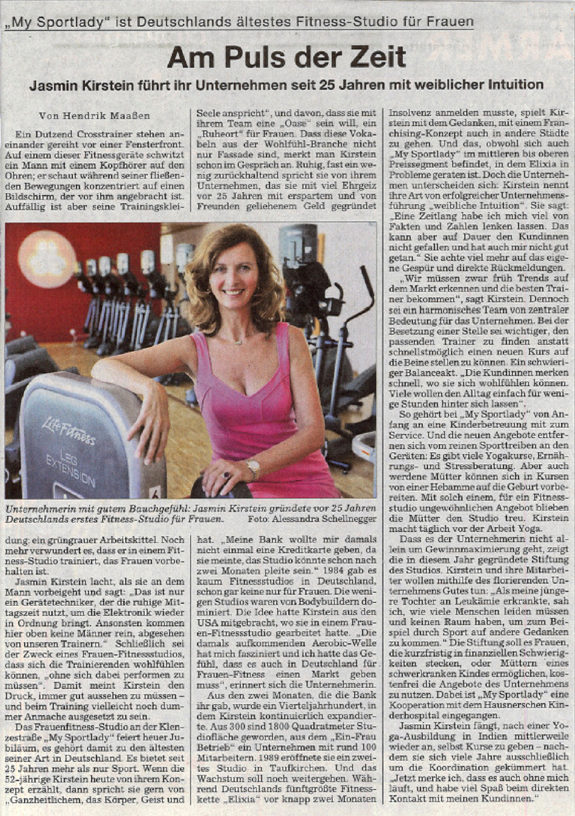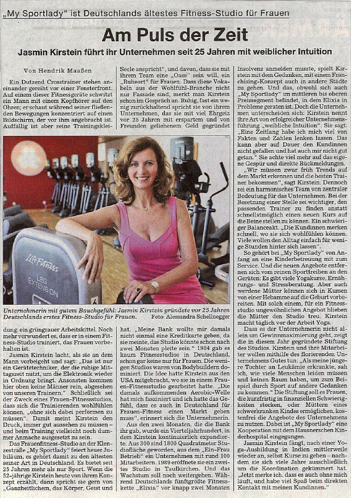 Zwischenzeitlich hatten wir mit Body & Soul und einigen anderen Studios Konkurrenz bekommen. Diese Fitnessketten machten riesige Werbekampagnen, was ich nicht schlecht fand. Konkurrenz belebt bekanntlich das Geschäft und mit höherem Bekanntheitsgrad würden bestimmt immer mehr Menschen zum Sport gehen und gesünder werden. Ich hatte nie Sorge um den Verbleib meiner Studios. Viele Frauen schätzten die einzigartige Atmosphäre eines Frauenstudios und entschieden sich genau deswegen für My Sportlady.